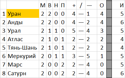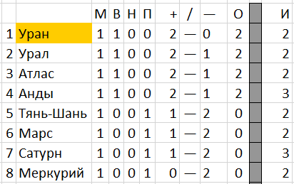 - Меркурий — Уран 0-2 (0:1, 0:1)