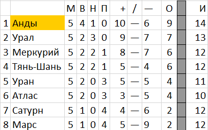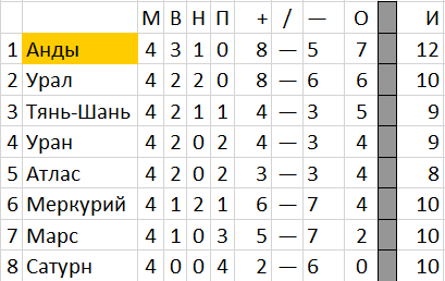 - Марс — Анды 1-2 (1:0, 0:1, 0:1)