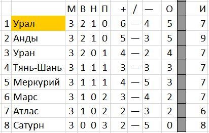 | 1 место | 2 место | 3 место | 4 место | 5 место | 6 место | 7 место | 8 место | |
